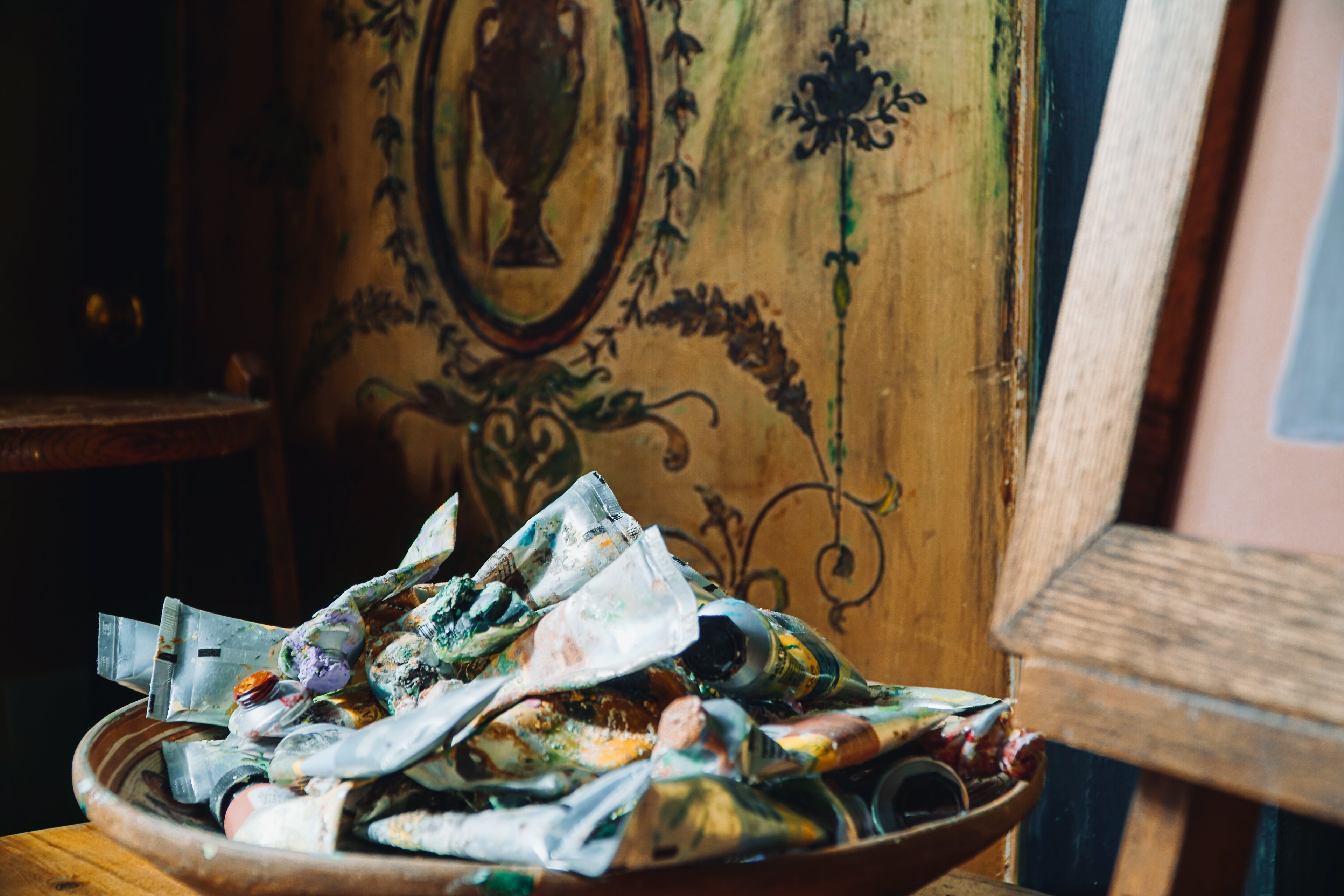 Antique Painted Armoire with Inlaid Chinoiserie